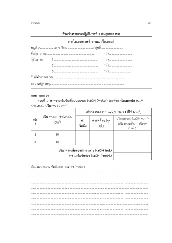 ตอนที่ 1 หาความเข้มข้นที่แน่นอนของ NaOH (Molar) โดยทำการไทเทรตกับ 0.1M