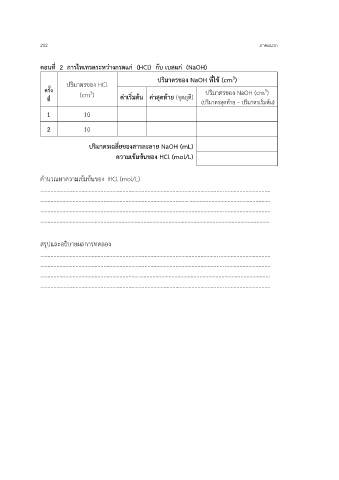 ครั้ง ปริมาตรของ HCl ปริมาตรของ NaOH (cm )