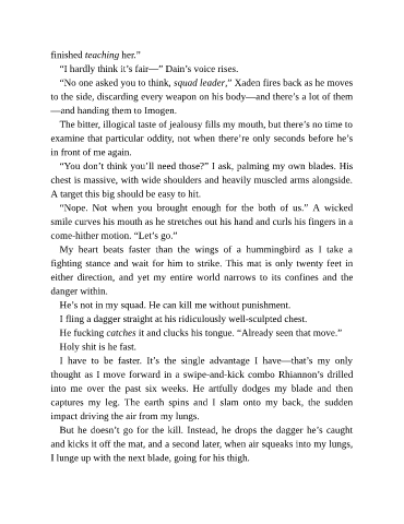 “No one asked you to think, squad leader,” Xaden fires back as he moves