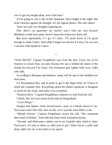“Kamryn Dyre.” Captain Fitzgibbons continues to read from the roll.