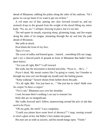 and I see a charred patch of ground in front of Rhiannon that hadn’t been