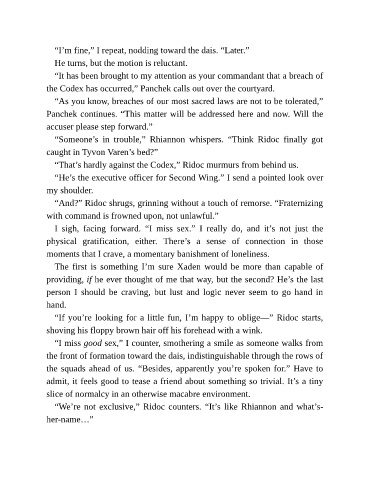“That’s hardly against the Codex,” Ridoc murmurs from behind us.