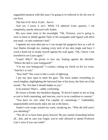 His eyes meet mine in the moonlight. “Oh, Violence, you’re going to