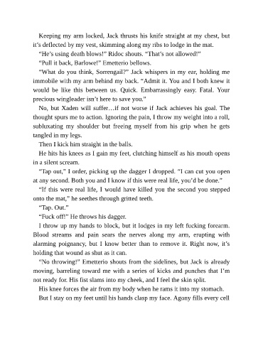 “Tap out,” I order, picking up the dagger I dropped. “I can cut you open