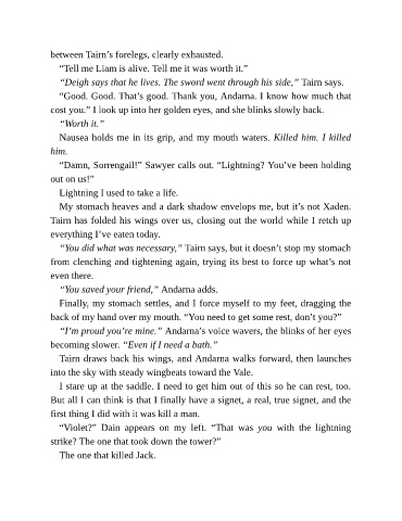 “Violet?” Dain appears on my left. “That was you with the lightning