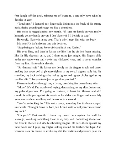 “So damned soft.” He kisses me deeply as his fingers touch and tease,