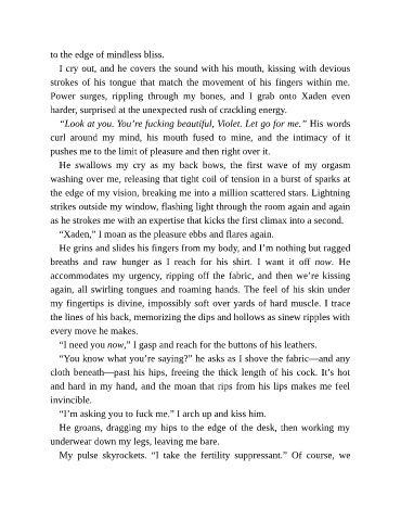 “Look at you. You’re fucking beautiful, Violet. Let go for me.” His words