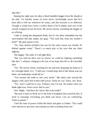 dagger’s hilt, and I feel it hum with power. Venin are real. Venin. Are. Real.