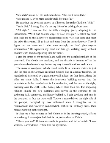 information. “We’ll find another way. For now, let’s go.” He takes my hand