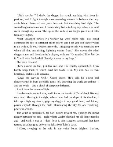 wound begins to burn, and I immediately battle to keep my balance as acid
