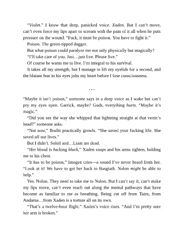 “Violet.” I know that deep, panicked voice. Xaden. But I can’t move,