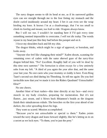 “Anyone else feel like changing their mind?” Xaden shouts, scanning the
