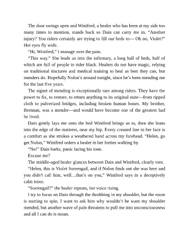 injury? You riders certainly are trying to fill our beds to— Oh no, Violet?”
