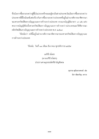 วินิจฉัยว่ำ คดีน้อยู่ในอ�ำนำจพิจำรณำพิพำกษำของศำลทรัพย์สินทำงปัญญำและ