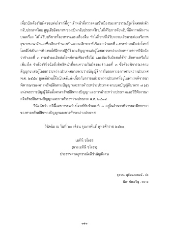 โดยมิใช่เป็นกำรฟ้องขอให้มีกำรปฏิบัติตำมสัญญำขนส่งผู้โดยสำรระหว่ำงประเทศ แต่กำรวินิจฉัย