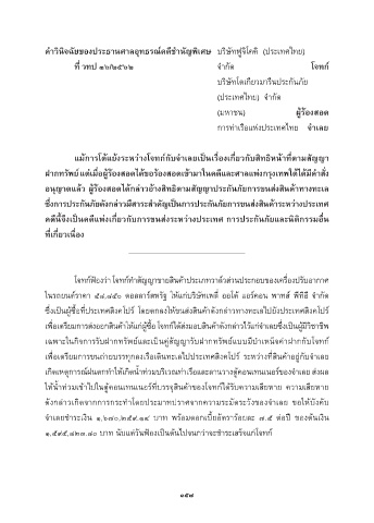 คดีน้จึงเป็นคดีแพ่งเก่ยวกับกำรขนส่งระหว่ำงประเทศ กำรประกันภัยและนิติกรรมอ่น