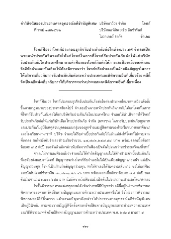 โจทก์ฟ้องว่ำโจทก์ประกอบธุรกิจรับประกันภัยต่อในต่ำงประเทศ จ�ำเลยเป็น