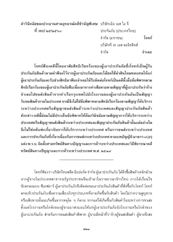 โจทกฟองวำ บริษัทไทยสตีล อิมปอรต จ�ำกัด ผูเอำประกันภัย ไดสั่งซื้อสินคำเหล็กมวน