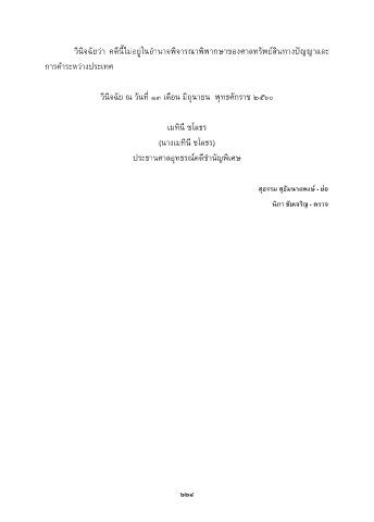 วินิจฉัยว่ำ คดีน้ไม่อยู่ในอ�ำนำจพิจำรณำพิพำกษำของศำลทรัพย์สินทำงปัญญำและ