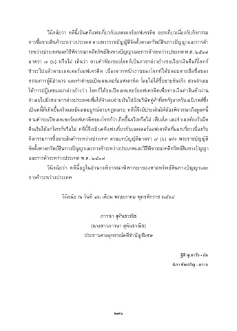 วินิจฉัยว่ำ คดีน้อยู่ในอ�ำนำจพิจำรณำพิพำกษำของศำลทรัพย์สินทำงปัญญำและ