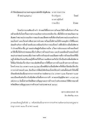 ของโจทก์ และเรียกค่ำเสียหำยจำกจ�ำเลย พร้อมท้งมีค�ำขอให้จ�ำเลยยุติกำรใช้ช่อและ