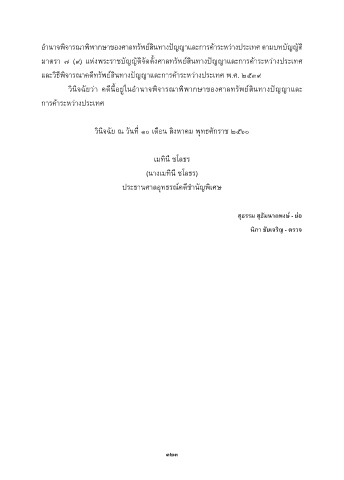วินิจฉัยว่ำ คดีน้อยู่ในอ�ำนำจพิจำรณำพิพำกษำของศำลทรัพย์สินทำงปัญญำและ
