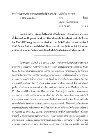 ว่ำ “SURIN SUGAR MILL Co.,Ltd.” อันเป็นกำรละเมิดสิทธในช่อบริษัทของโจทก์ เน่องจำก