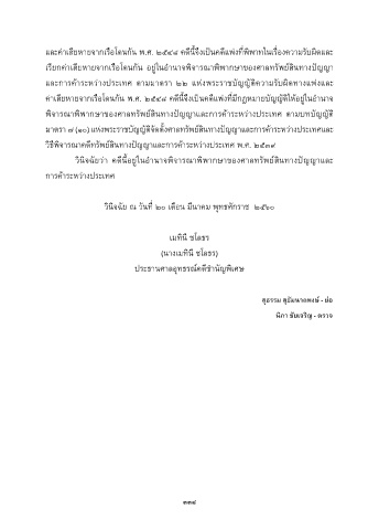 วินิจฉัยว่ำ คดีน้อยู่ในอ�ำนำจพิจำรณำพิพำกษำของศำลทรัพย์สินทำงปัญญำและ