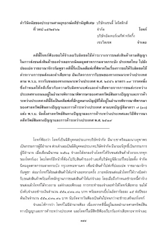 ทำงปัญญำและกำรค้ำระหว่ำงประเทศ และโจทก์ไม่มีสิทธิฟ้องเรียกร้องค่ำเสียหำยจำกจ�ำเลย