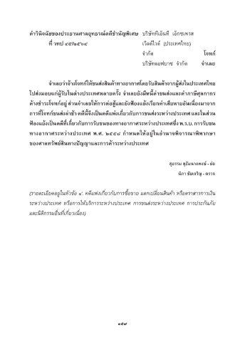 กำรท่โจทก์ขนส่งล่ำช้ำ คดีน้จึงเป็นคดีแพ่งเก่ยวกับกำรขนส่งระหว่ำงประเทศ และในส่วน