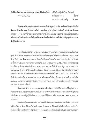 โจทก์ฟ้องว่ำ เมื่อวันที่ ๕ มิถุนำยน ๒๕๕๘ จ�ำเลยเริ่มท�ำงำนเป็นพนักงำนบริษัทไทย