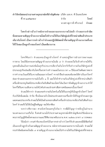 กำรขำย โดยมีข้อตกลงตำมสัญญำจ้ำงแรงงำนในข้อ ๙ ว่ำ จ�ำเลยจะไม่รับจ้ำงท�ำงำนให้กับ