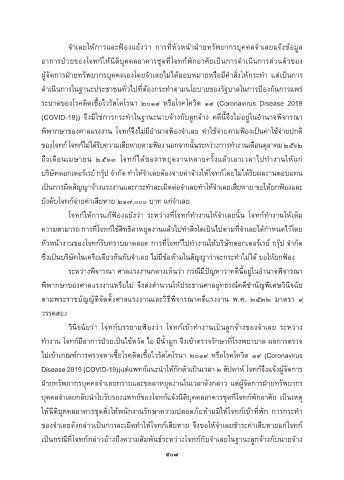 Disease 2019 (COVID-19))แต่แพทย์แนะน�ำให้กักตัวเป็นเวลำ ๒ สัปดำห์ โจทก์จึงแจ้งผู้จัดกำร