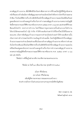 วินิจฉัยว่ำ คดีนี้อยู่ในอ�ำนำจพิจำรณำพิพำกษำของศำลแรงงำน
