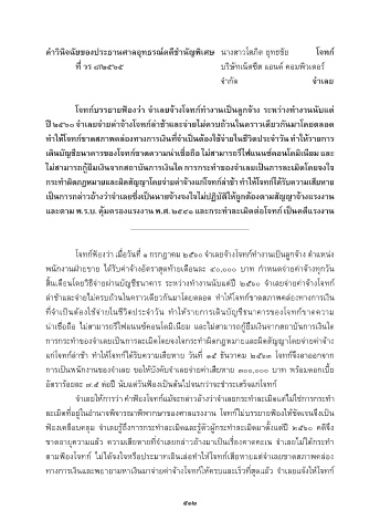 กำรเป็นพนักงำนของจ�ำเลย ขอให้บังคับจ�ำเลยจ่ำยค่ำเสียหำย ๓๐๐,๐๐๐ บำท พร้อมดอกเบี้ย