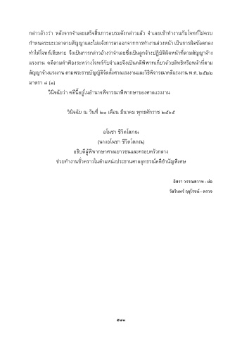 วินิจฉัยว่ำ คดีนี้อยู่ในอ�ำนำจพิจำรณำพิพำกษำของศำลแรงงำน