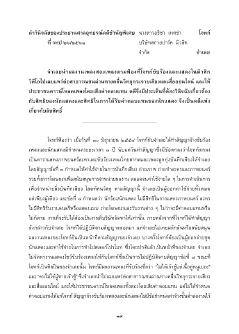จ�ำเลยน�ำผลงำนเพลงสองเพลงตำมฟ้องท่โจทก์ขับร้องและแสดงในมิวสิก