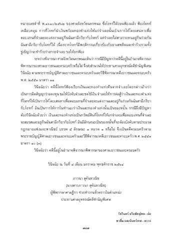 ต้องวินิจฉัยด้วยว่ำ เงินและทองค�ำแท่งเป็นทรัพย์สินท่โจทก์ให้แก่จ�ำเลยเพ่อตอบแทนท่จ�ำเลย