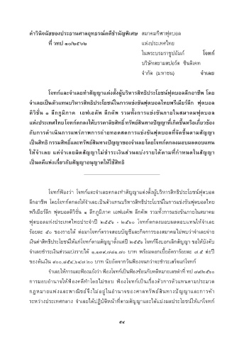 ฟุตบอลแห่งประเทศไทยประจ�ำปี ๒๕๕๖ - ๒๕๖๐ โจทก์ตกลงมอบผลตอบแทนให้จ�ำเลย