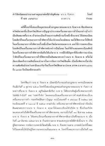 โอนสิทธิในเคร่องหมำยกำรค้ำพิพำทดังกล่ำวเป็นโมฆะ โดยให้จ�ำเลยจดทะเบียนสิทธ ิ