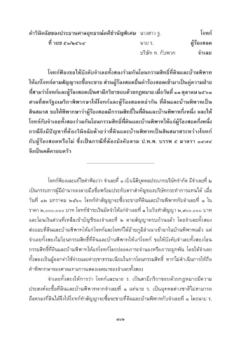 ให้แก่โจทก์ตำมสัญญำจะซื้อจะขำย ส่วนผู้ร้องสอดยื่นค�ำร้องสอดเข้ำมำเป็นคู่ควำมฝ่ำย