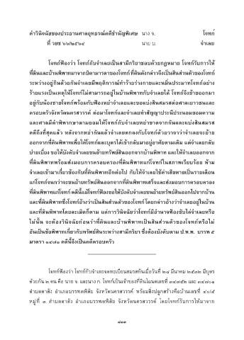 ท่ดินพิพำทแก่โจทก์ คดีน้แม้โจทก์ฟ้องขอให้บังคับจ�ำเลยขนย้ำยทรัพย์สินออกไปจำกบ้ำน