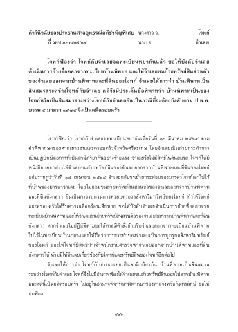 ของจ�ำเลยออกจำกบ้ำนพิพำทและท่ดินของโจทก์ จ�ำเลยให้กำรว่ำ บ้ำนพิพำทเป็น