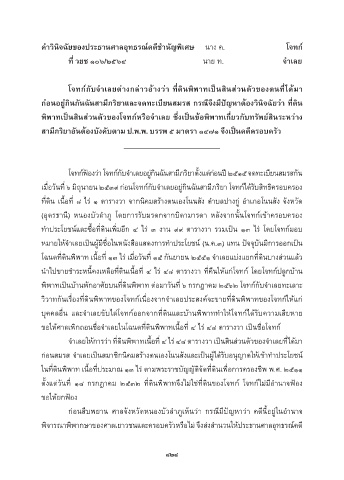 จ�ำเลยให้กำรว่ำ ที่ดินพิพำทเนื้อที่ ๔ ไร่ ๔๘ ตำรำงวำ เป็นสินส่วนตัวของจ�ำเลยที่ได้มำ