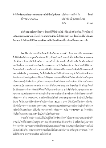 “พิณนำรำ” หรือ “PINNARA” ของโจทก์ผ่ำนเว็บไซต์ www.shopee.co.th ซึ่งเป็นเว็บไซต์ของ