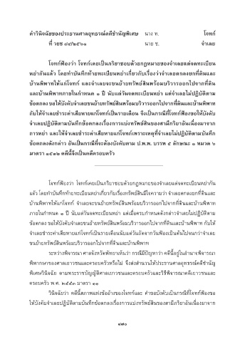 บ้ำนพิพำทให้แก่โจทก์ จ�ำเลยจะขนย้ำยทรัพย์สินพร้อมบริวำรออกไปจำกท่ดินและบ้ำนพิพำท