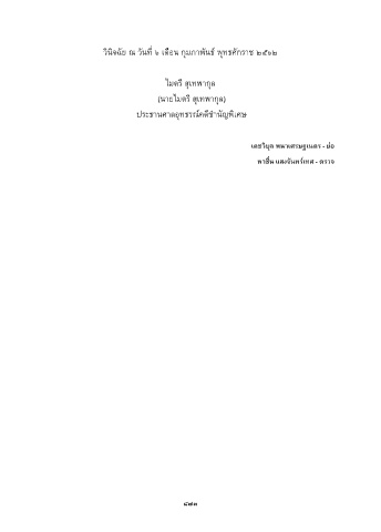 วินิจฉัย ณ วันที่ ๖ เดือน กุมภำพันธ์ พุทธศักรำช ๒๕๖๒ ไมตรี สุเทพำกุล (นำยไมตรี สุเทพำกุล) ประธำนศำลอุทธรณ์คดีช�ำนัญพิเศษ เดชวิบุล พนำเศรษฐเนตร - ย่อ พำชื่น แสงจันทร์เทศ - ตรวจ 873
