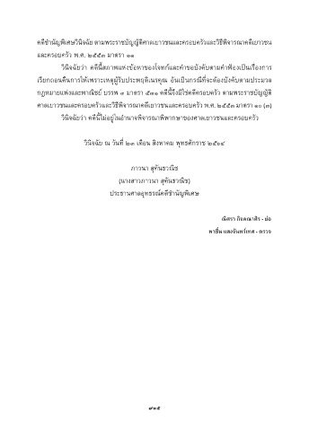 วินิจฉัยว่ำ คดีนี้ไม่อยู่ในอ�ำนำจพิจำรณำพิพำกษำของศำลเยำวชนและครอบครัว
