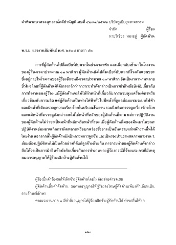 ถือไดวาเปนการฝาฝนขอบังคับเกี่ยวกับการทํางานของผูรองกรณีที่รายแรง กรณีมีเหตุ