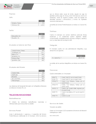 Postal Mexicano distribuidas en el municipio. Entre los servicios Datos referidos al 2015.